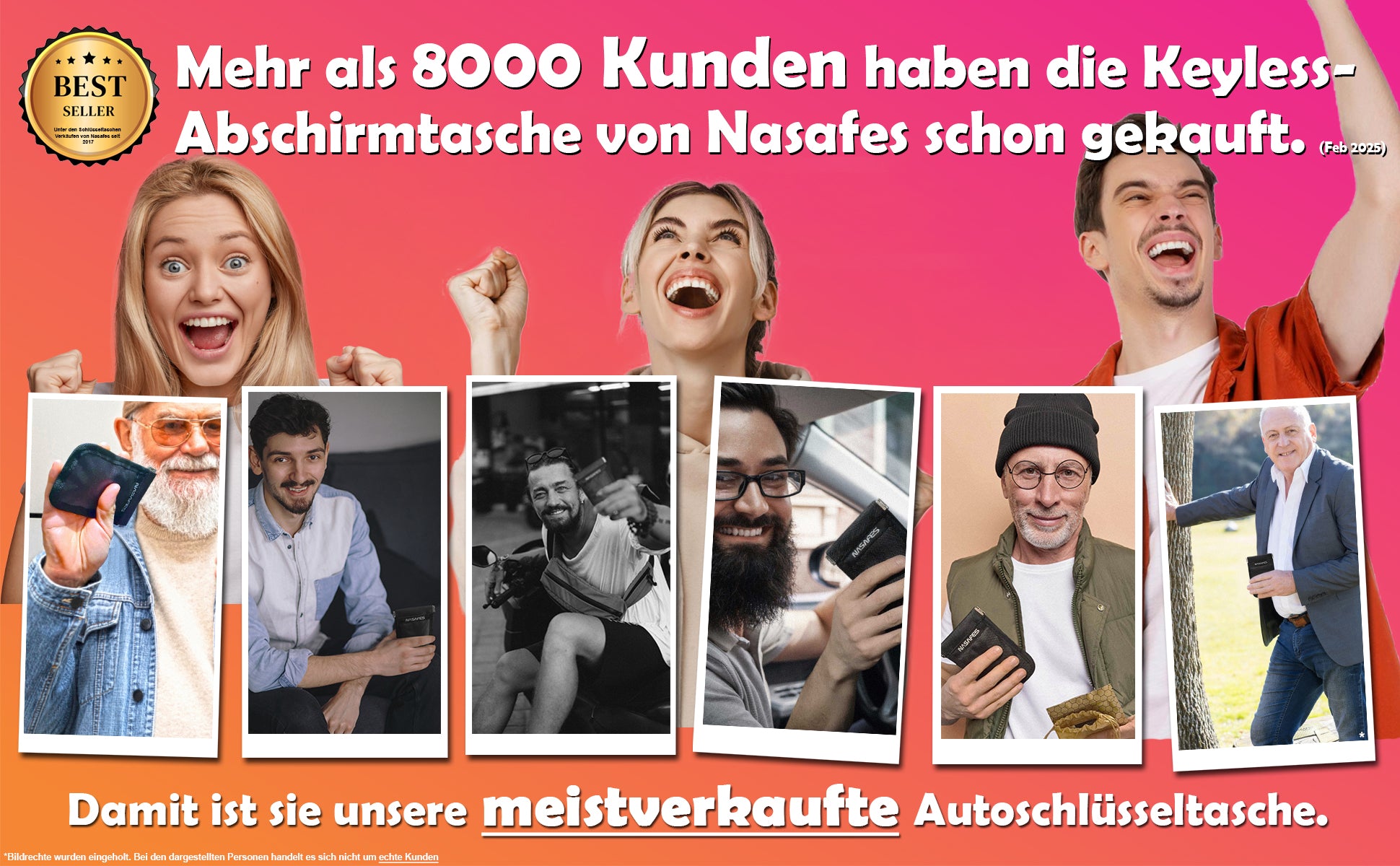 Mehrere Tausend Kunden bestätigen. Die Nasafes Abschirmtasche blockiert Funksignale und gibt Dieben keine Chance. Besitzer der Abschirmtasche fühlen sich nun sicherer an Tankstellen, Parkplätzen und Zuhause!